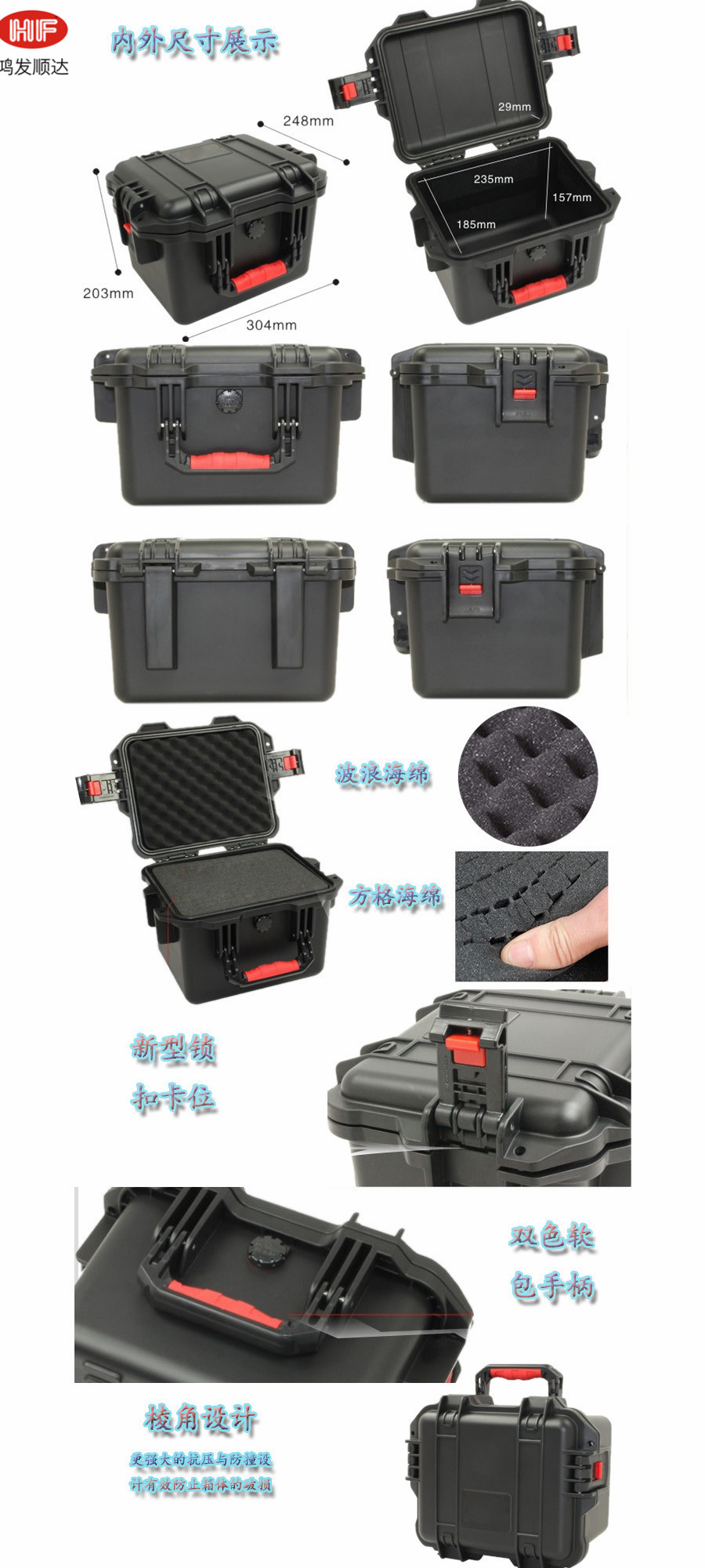 簡要說明:廣泛用于傳媒、公安、消防、軍隊、航空、戶外攝影、野外考察、科學(xué)探測等眾多領(lǐng)域的高端儀器、儀表。具有高強度、高抗壓沖擊、防潮、絕對密封、防塵、防水等特點。產(chǎn)品材質(zhì):ABS原料,箱體采用高抗沖擊的高分子聚合材料一體注塑成型,密封采用扁型彈性發(fā)泡密封橡膠條,確保防水氣密,所有較軸均采用不銹鋼材質(zhì)。