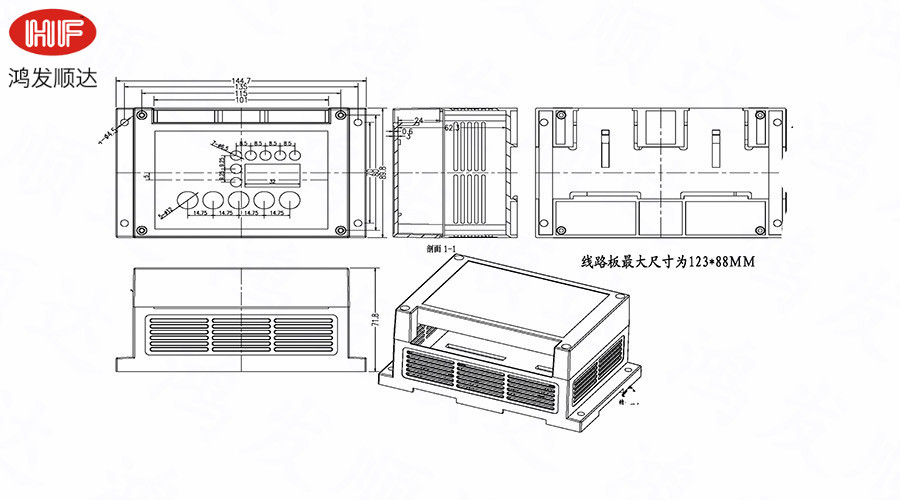 產(chǎn)品用途:廣泛應(yīng)用于電子行業(yè)中各種PLC模塊電路、控制器單元、配電器模塊等 。具有完全絕緣性保護(hù)、散熱性良好等特點(diǎn)。均采用ABS/PC原料生產(chǎn),符合ROHS環(huán)保標(biāo)準(zhǔn)、性能好、耐高溫,不加入任何再生料??筛鶕?jù)客戶要求重新開模具。 產(chǎn)品參數(shù): 【產(chǎn)品型號(hào)】:HF-Q-43 【產(chǎn)品名稱】:工控盒 【產(chǎn)品材料】:ABS塑料 【產(chǎn)品規(guī)格】:145*90*72{mm} 【產(chǎn)品顏色】:可根據(jù)客戶要求任意定制。 【產(chǎn)品加工】:可根據(jù)客戶要求進(jìn)行局部加工。 【表面處理】:可做噴油、噴涂等處理。